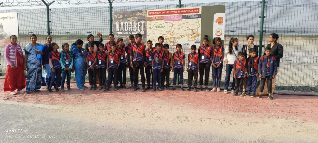 Departing from the school at 6:00 am, the enthusiastic group of students, accompanied by teachers and staff, arrived at Nadabet at 11:00 am. Their itinerary was packed with insightful experiences, including a visit to the majestic Zero Point Border, where the Indian and Pakistani borders converge. Students witnessed this critical juncture, learning about its historical importance and the ongoing efforts to maintain peace and security in the region.
