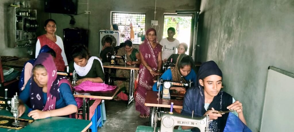 Mrs Rashmika, the tailoring instructor, is sincerely dedicating her time and expertise to teach the women. She employs a hands-on approach, patiently guiding each participant through basic and advanced tailoring techniques. The women are learning to stitch salwar suits, blouses, petticoats, and children’s garments. They are also trained in handling sewing machines and maintaining them efficiently.